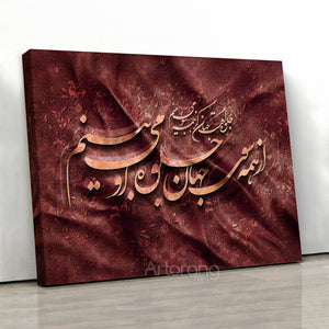 Shahriar Poem Persian Calligraphy Canvas Wall Art - Red Islamic Décor