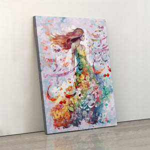 Wings Remembered: Forough Farrokhzad Poem Canvas Art with Female Portrait