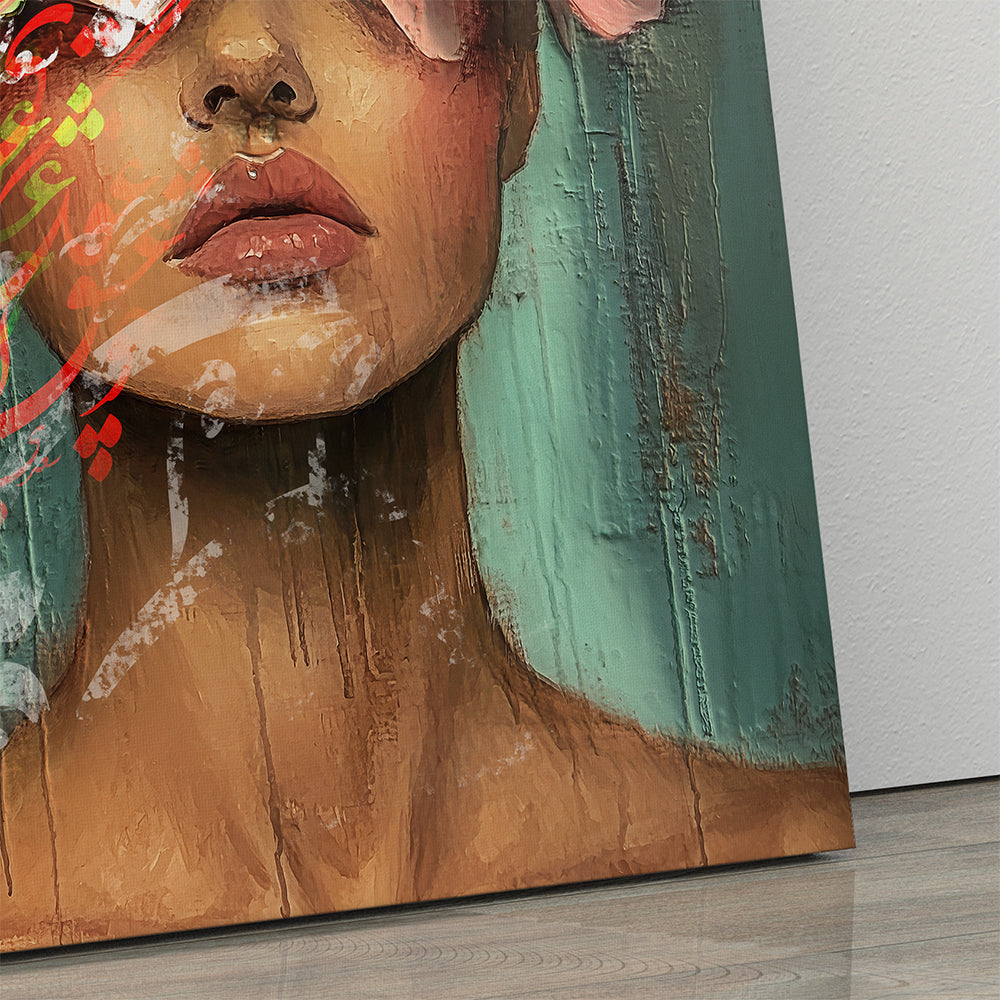 This captivating Artorang canvas wall art beautifully merges Persian poetry, calligraphy, and modern digital painting. The artwork portrays a woman whose face blooms into soft pink flowers, symbolizing the blossoming of love beyond reason. The poem by Saadi — “When love rises, talk not of wisdom again; in polo, the ball must the club’s slave remain” — reflects the surrender of logic to passion and emotion.