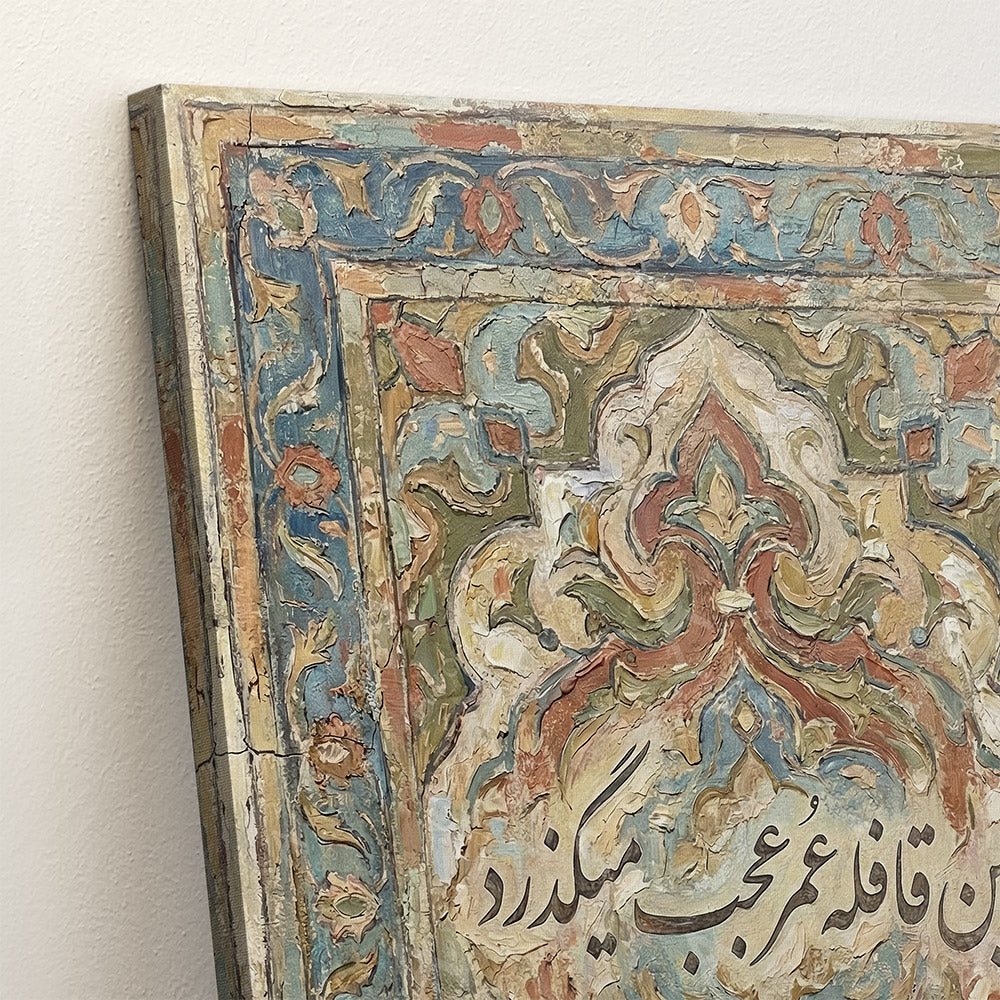 We use UV-resistant, solvent-free inks on high-quality cotton canvas to preserve the elegance of Nastaliq calligraphy and Persian design — delivering art that’s both meaningful and made to last.