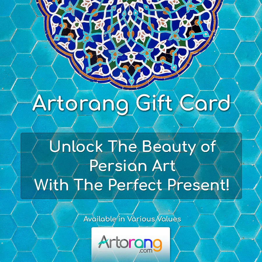 Discover the Artorang Gift Card, a gateway to exquisite Persian art. This exclusive design embodies the rich beauty and vibrant colors of traditional Persian aesthetics. The mesmerizing blue and intricate patterns evoke a sense of elegance and cultural heritage. Perfect for art lovers, this gift card offers flexibility and creativity. Available in various values, it empowers recipients to choose their perfect piece from our stunning collection. Elevate your gift-giving with this unique Artorang offering.