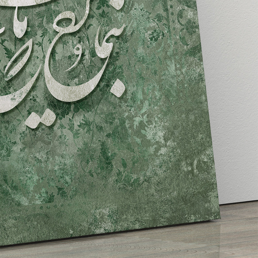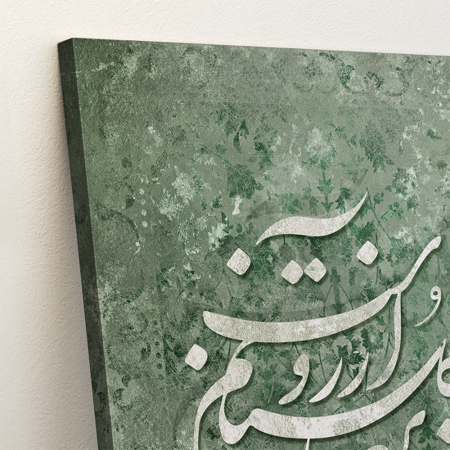 This exquisite Artorang canvas wall art features a captivating Persian design with a soulful Rumi poem. The lush green color palette evokes tranquility and growth. Handwritten Persian calligraphy is beautifully integrated, adding an authentic touch. The poem expresses a longing for beauty and the divine, inviting introspection. This exclusive design is a canvas print available in multiple sizes, perfect for adding a touch of elegance to any space.