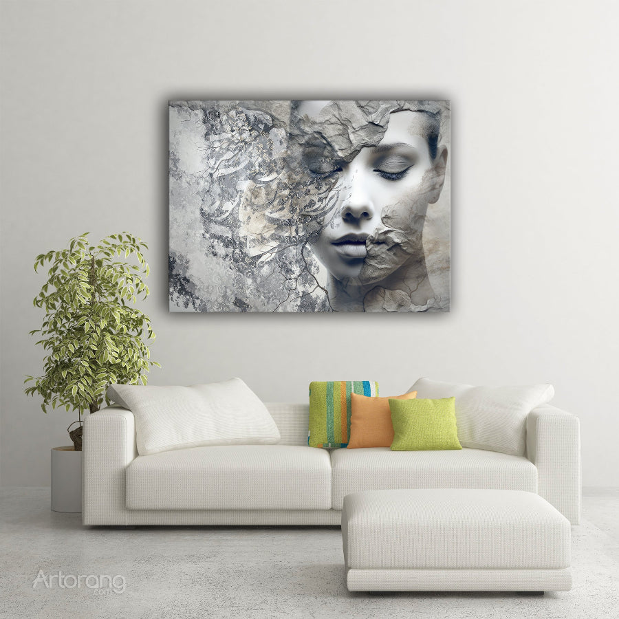 This exquisite Artorang canvas wall art beautifully blends Persian design with a poetic touch. The artwork features a serene, dreamy portrait intertwined with intricate floral motifs, evoking a sense of romance and longing. A subtle, soft color palette of grays and whites adds elegance to any room. Persian calligraphy, handwritten on paper and digitally integrated, enhances the visual appeal. This exclusive Artorang design is a tribute to the timeless words of Saadi, making it a perfect gift for lovers of Persian art. Available in multiple sizes, it complements any decor style.