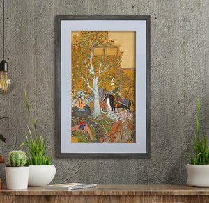 Persian Miniature Art "Zal Is Sighted by a Caravan" from Shahnameh by Ferdowsi - Framed with Color Options